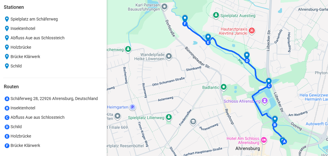 Der Krimi-Trail führt euch abseits von Straßen entlang der Aue. An jeder Station gibt es eine kurze Aufgabe, die die Kinder alleine lösen können.